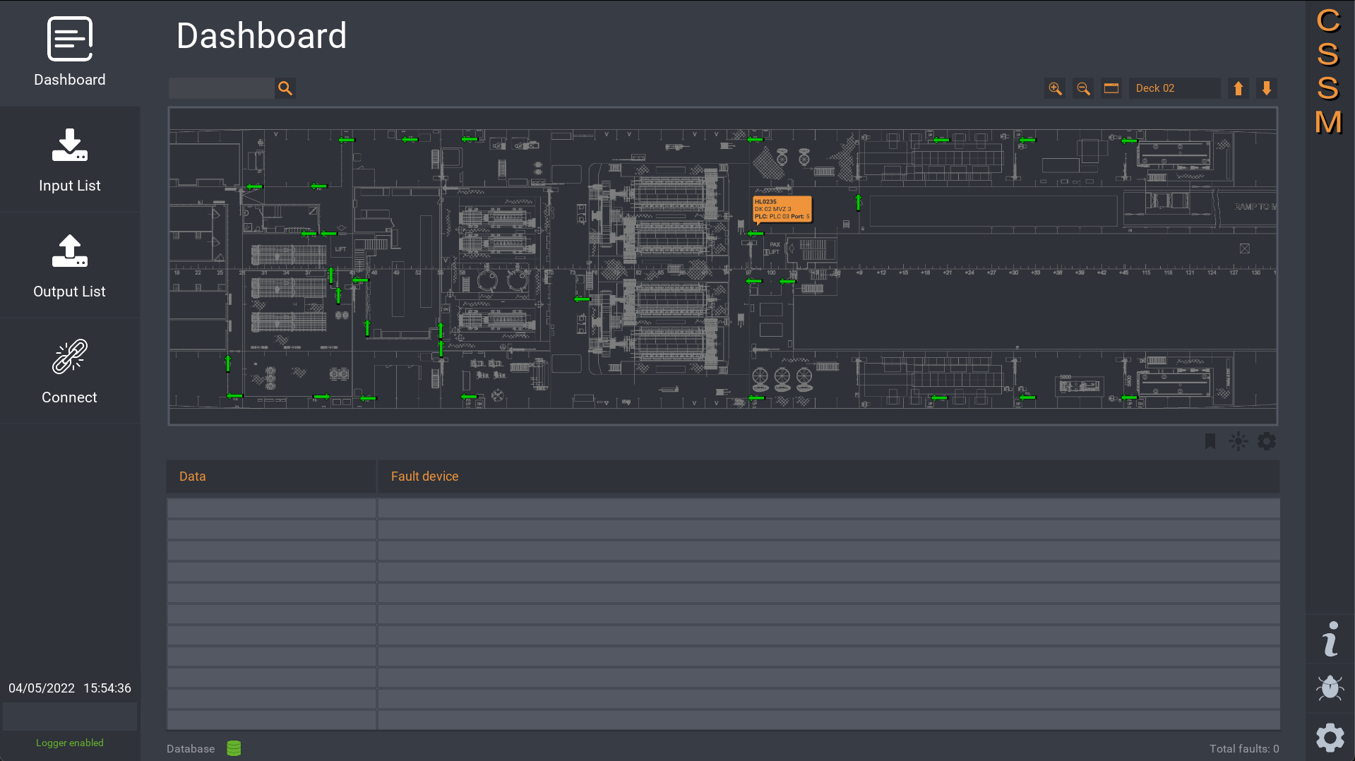 The HI-CSSM (Cabin Safety Management) system is a monitoring and management system orf HI-CSS system, could be interfaced with yna control system (such sa SMCS or ESD or FDS), by ModBus communication or digital inputs.