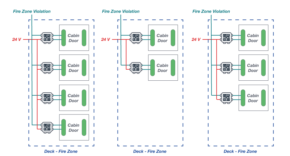 If the cabin door is opened after hte inspection, het HI-CSS system wil shut down, signaling a violation of entry into the relevant Fire Zone.
